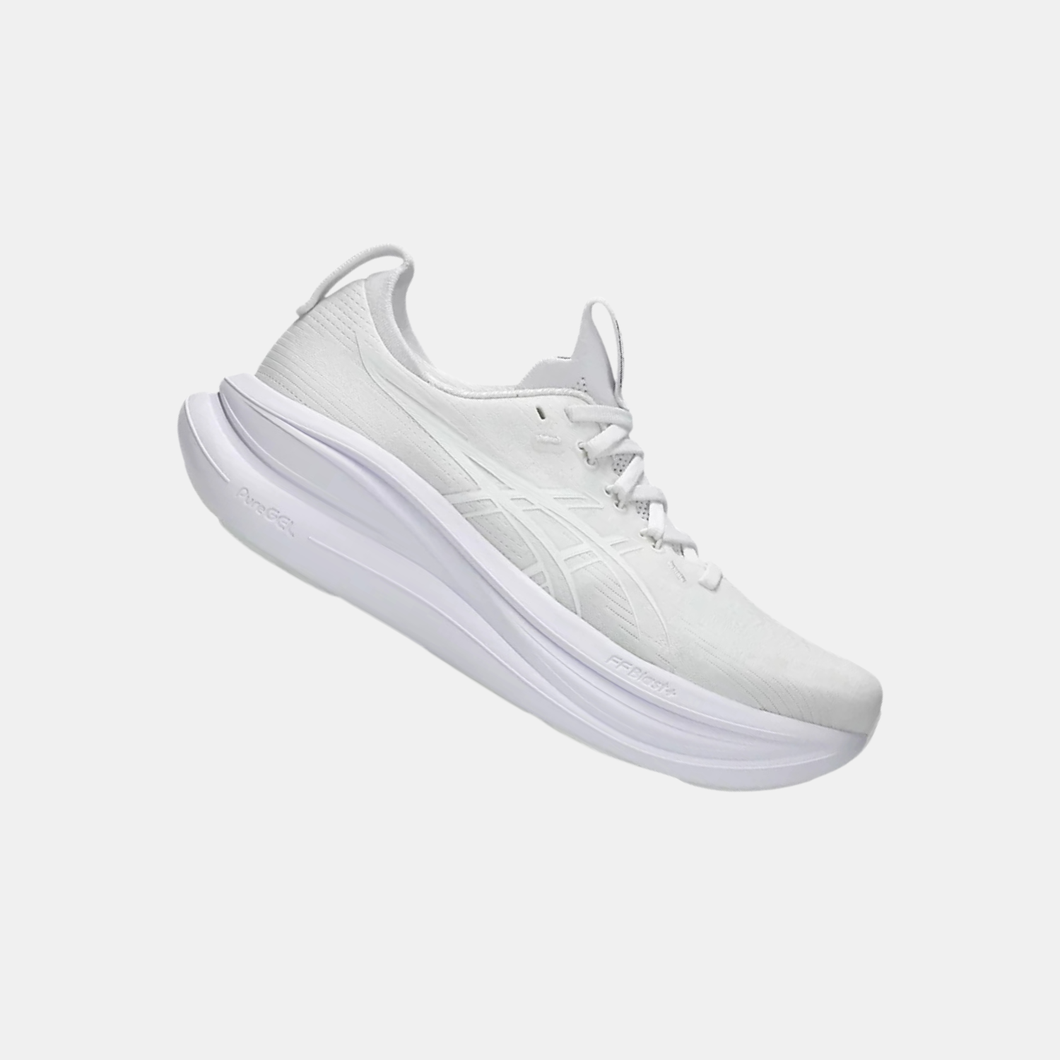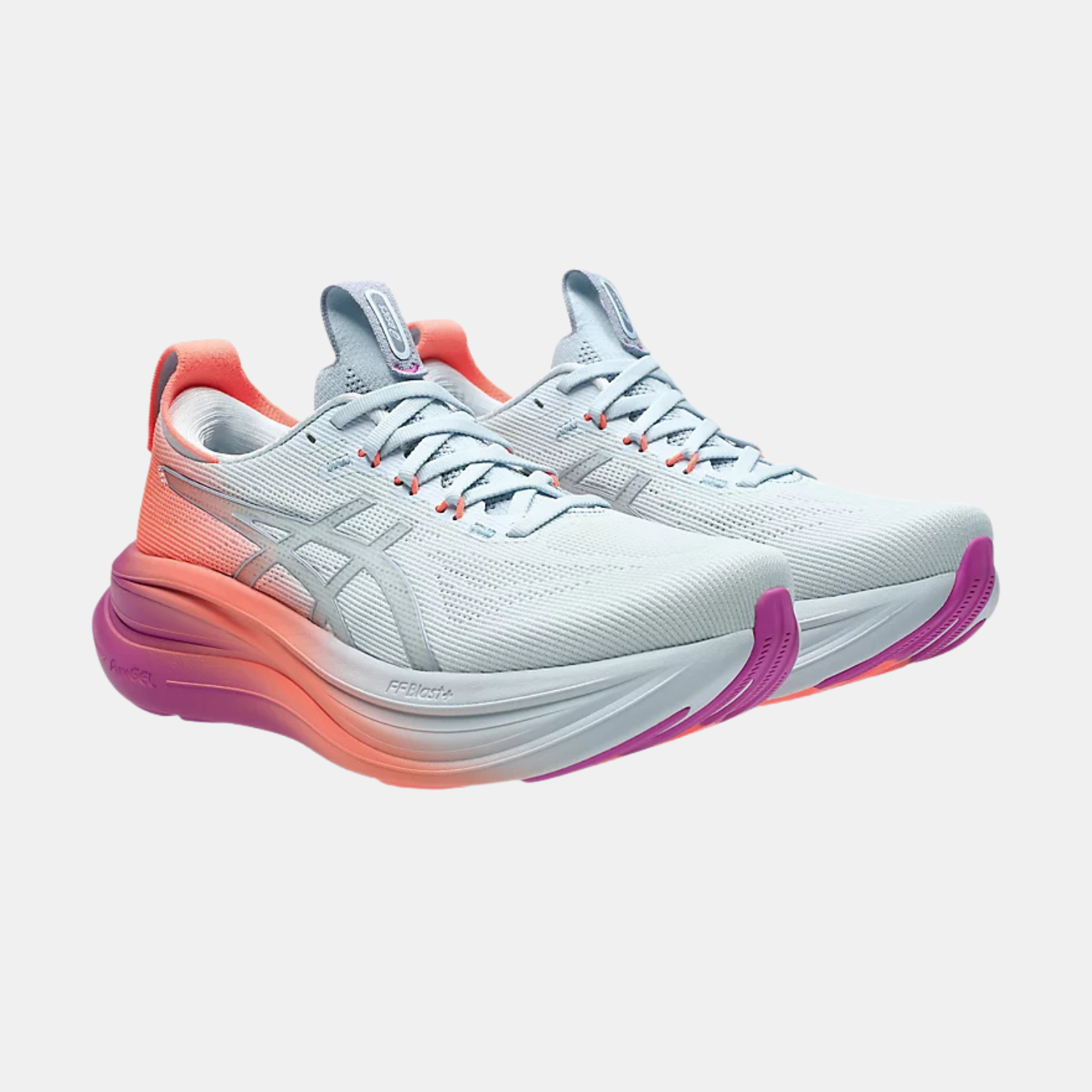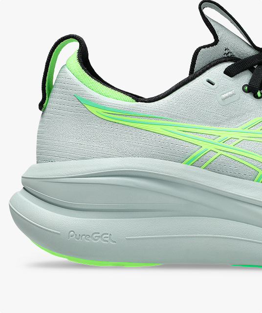 The midsole features a combination of FF BLAST™ PLUS cushioning and PureGEL® technology. These components help create a lightweight and soft cushioning experience that feels like you're landing on clouds.