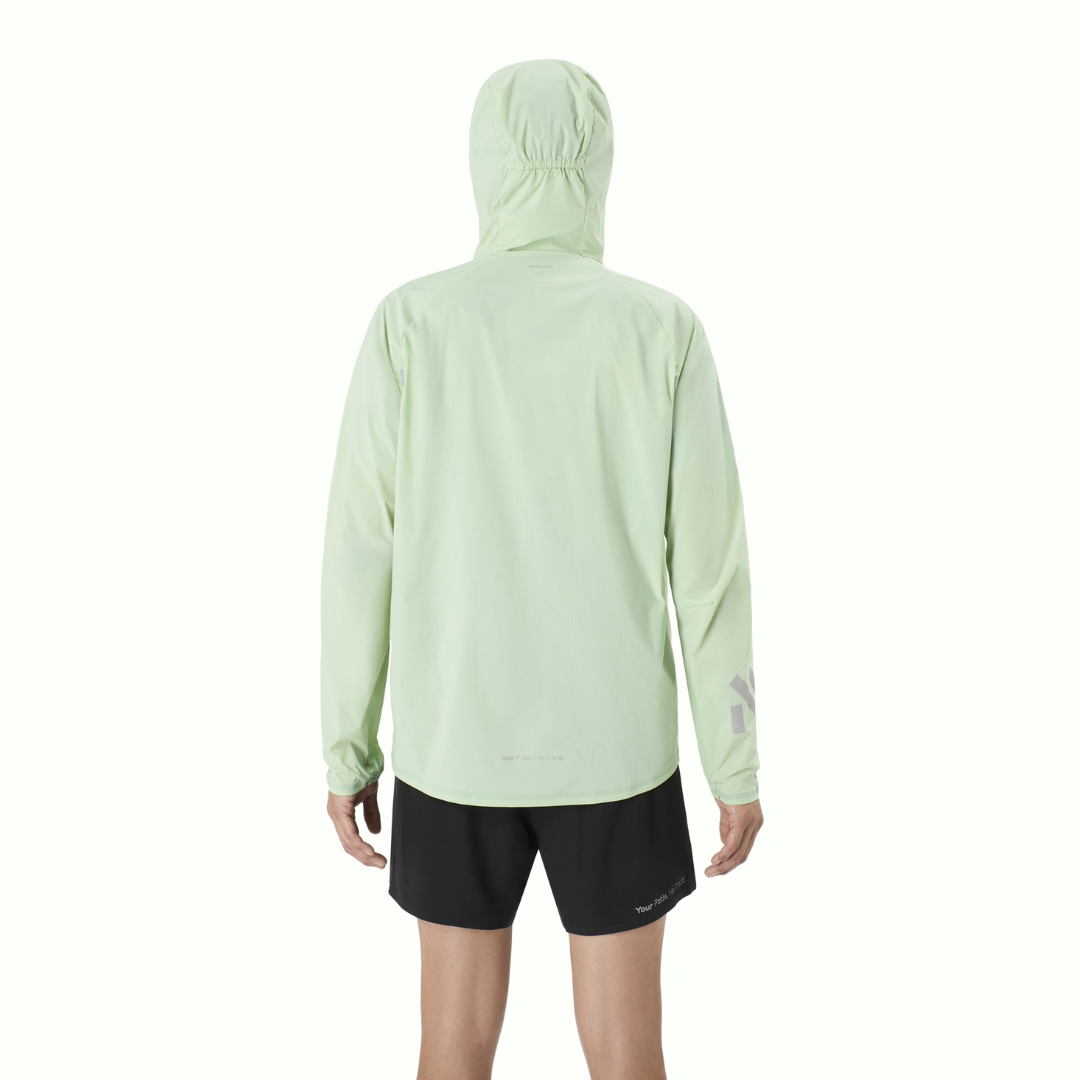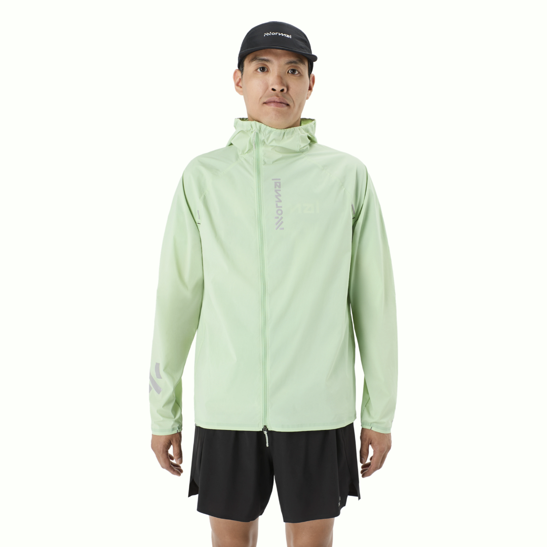 Dans un ton vert terreux qui se fond dans le sentier, voici le coupe-vent NNORMAL le plus léger, conçu pour bouger librement.