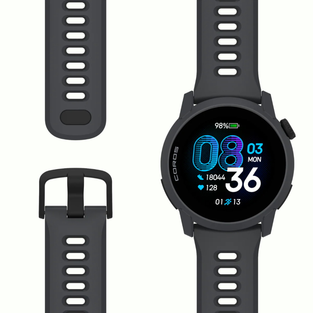- 32 grammes avec le bracelet en nylon pour un confort au quotidien et une efficacité maximale en course, et seulement 40 grammes avec le bracelet en silicone.