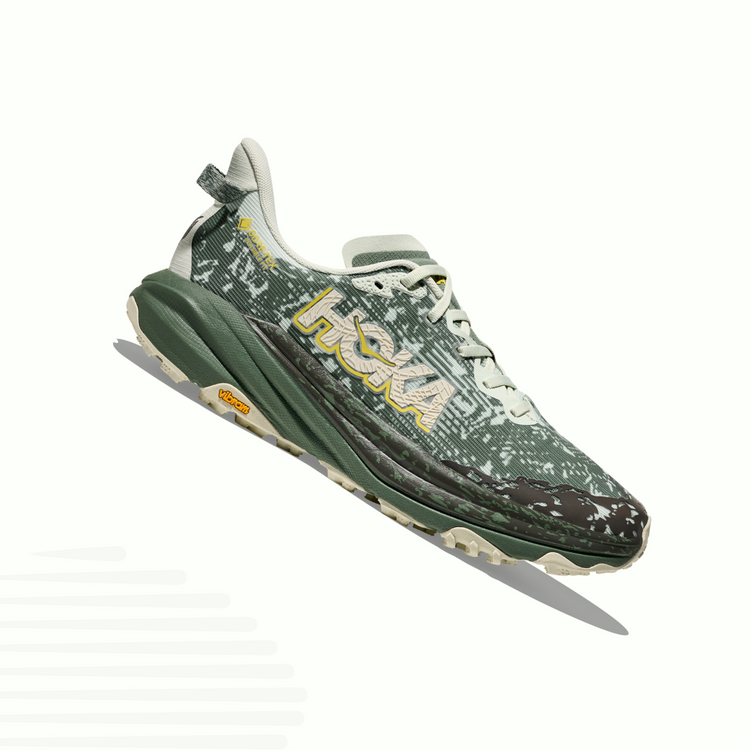 La Speedgoat 6 GORE-TEX est désormais encore plus confortable grâce à la membrane imperméable GORE-TEX Invisible Fit qui apporte souplesse et légèreté à la construction afin d’aider à éviter les points de pression. Doté d’une semelle extérieure Vibram® Mega-Grip avec crampons Traction Lug pour un meilleur mordant sur les sols instables, cet incontournable du trail utilise un renfort de talon qui épouse le pied, une semelle intermédiaire légère et réactive, et un embout protecteur pour foncer sur les terrains accidentés. Ne craignez plus la météo.